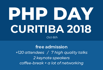 This year, we'll have hands-on courses (with 8 hour duration each), practical mini-courses, talks and keynotes. The event place provide us a camping area, so you can come and stay all night long, and on december 6th - last event day -, we have the PHP Conference on Beach: a day to enjoy with event attendees.